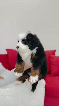 Mr. Hammy, our exceptional Multigenerational Mini Bernedoodle weighing 32lbs. Chosen for his rare non-fading tan points, impeccable genetic testing results, and ideal coat type for breeding Multigenerational and Ultra Bernedoodles, Hammy is a standout in every way. Beyond his physical qualities, his smart, silly, and eager-to-please disposition makes him a joy to work with and a beloved member of our program. Hammy embodies the perfect package of charm, intelligence, and adaptability, promising exceptional offspring and bringing joy to all who know him.