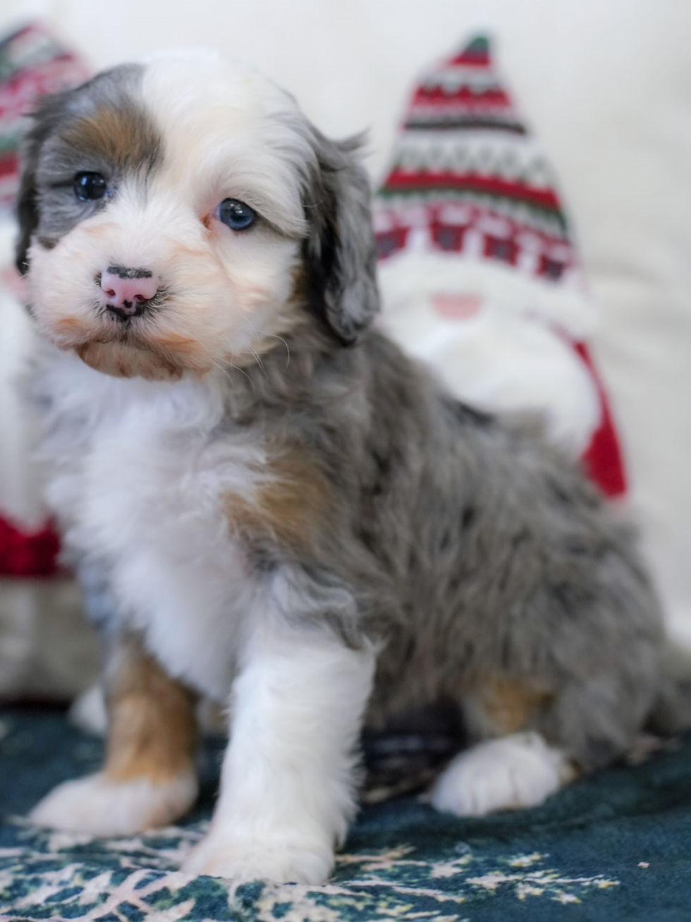 ✈ Travel size! Expected adult weight 15-25Ibs, averaging 20Ibs. Soft textured, and straight to wavy coat type expected at maturity. These puppies are considered Micro Multigenerational Bernedoodles.