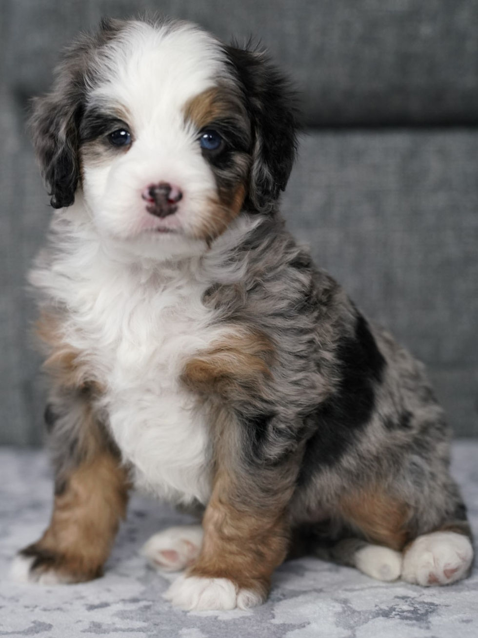 Meet Eli, our charming and handsome Bernedoodle stud! Eli is an integral part of our breeding program, and we couldn’t be more thrilled with the quality he brings to the table. At just 23 lbs, he’s a smaller-sized Bernedoodle, which makes him an excellent choice for families looking for a Tiny Bernedoodle when paired with a Poodle mom. His size, temperament, and unique traits are truly exceptional!