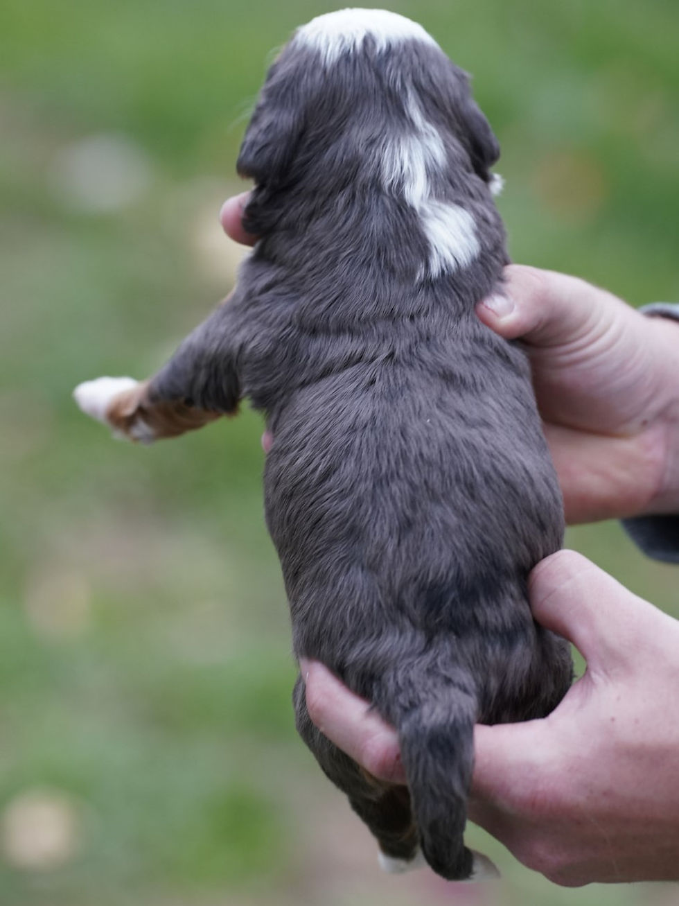 Expected adult weight 15-25Ibs, averaging 20Ibs. Soft textured, and wavy to curly coat type expected at maturity. These puppies are considered Micro F1b Bernedoodles.