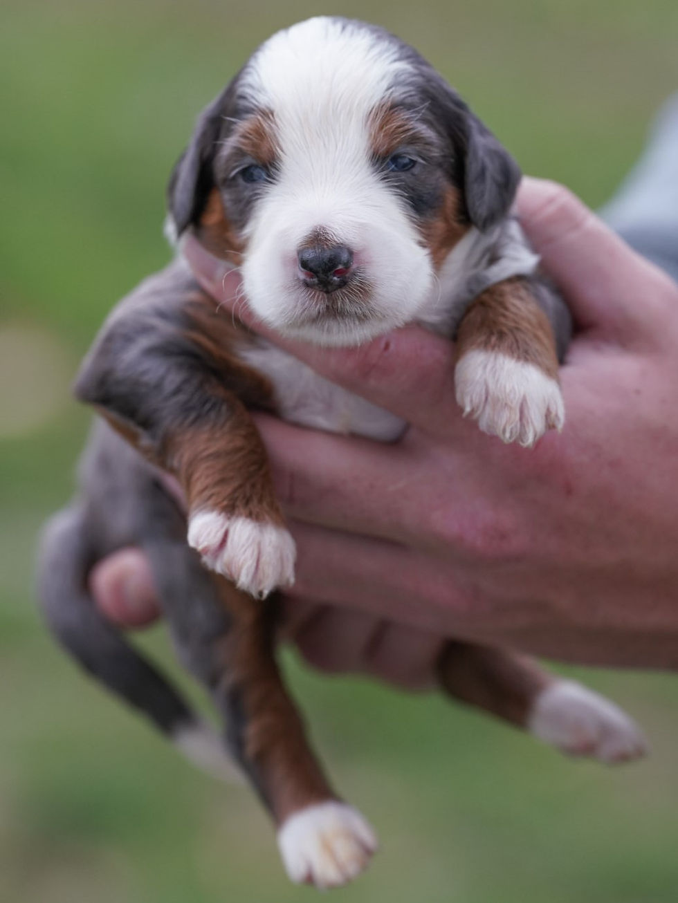 Meet Eli, our charming and handsome Bernedoodle stud! Eli is an integral part of our breeding program, and we couldn’t be more thrilled with the quality he brings to the table. At just 23 lbs, he’s a smaller-sized Bernedoodle, which makes him an excellent choice for families looking for a Tiny Bernedoodle when paired with a Poodle mom. His size, temperament, and unique traits are truly exceptional!