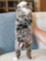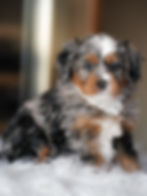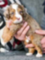 which is a major plus for any dog owner. We’ve been incredibly impressed with the coloring and temperament of his puppies so far, and we’re excited to continue seeing the wonderful traits he passes down to future litters.Not only does Eli possess a stunning appearance, but his personality is equally wonderful. He’s incredibly playful and loves to engage in activities like playing fetch, which is a great way to keep him active and entertained. He has an easygoing, affectionate nature and gets along well with other dogs.Eli also has a special affinity for children. His gentle, loving temperament allows him to bond quickly with young ones. He’ll happily spend hours hanging out with you—whether it’s snuggling on the couch or running around outside. His calm demeanor and patience make him the perfect family dog, and we love seeing how he interacts with all ages. Eli is a special part of our program and we are excited to see more of his puppies!