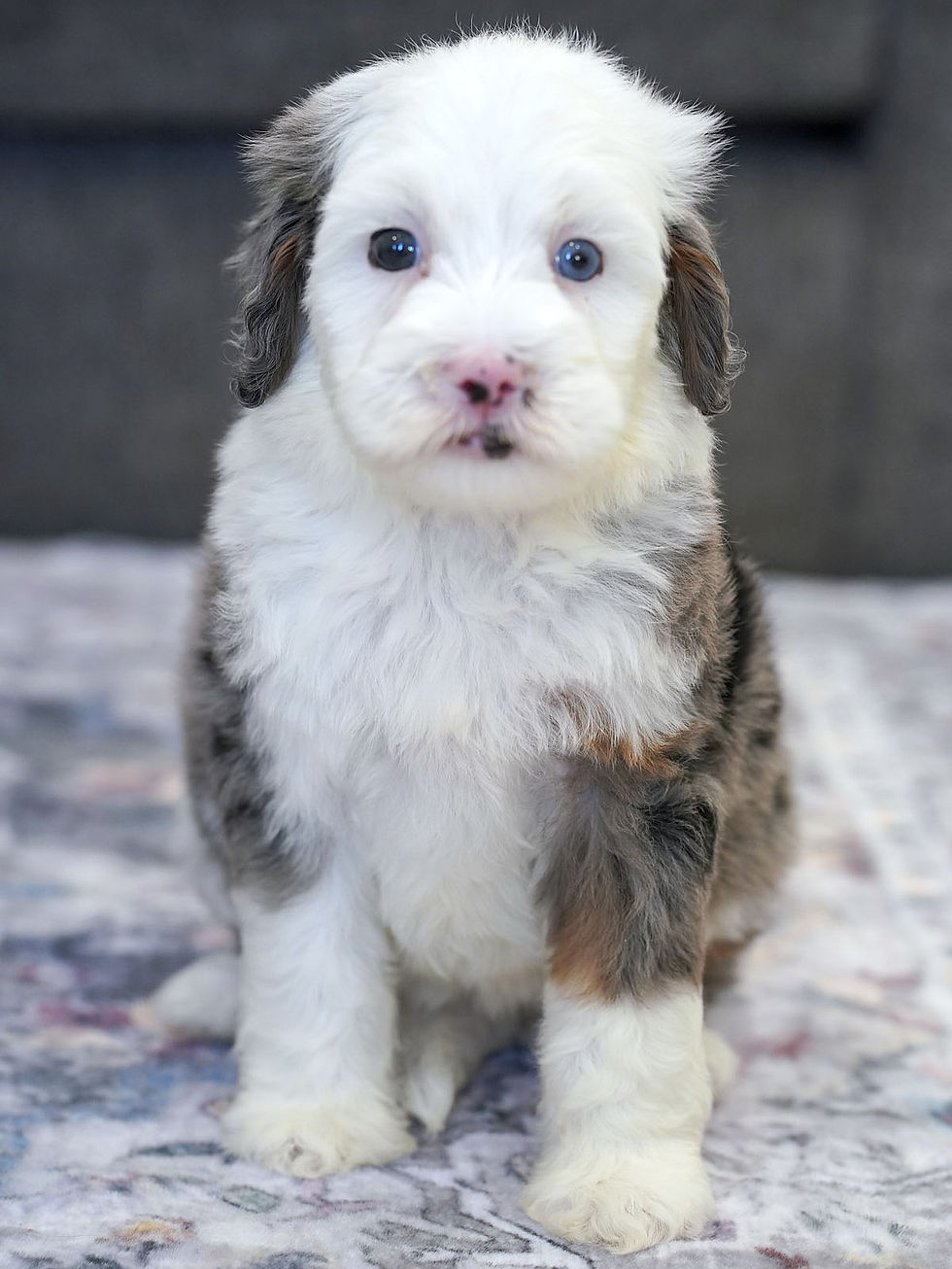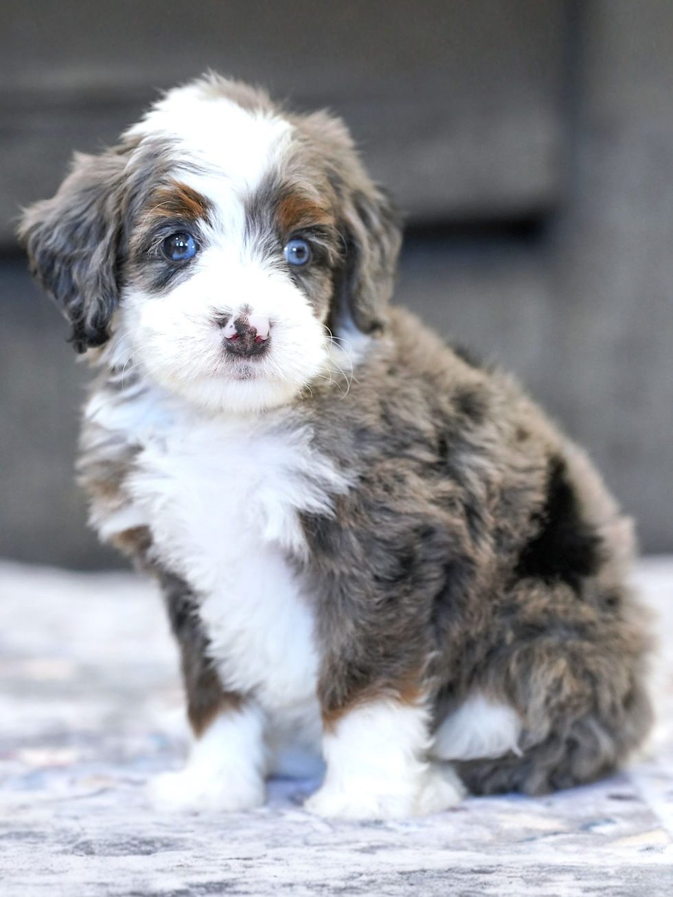 Ms. Nora, the long-awaited star of our breeding program! Nora is an F1 Mini Bernedoodle Mama who embodies everything we've been searching for for our program. With her striking non-fading tan points and a beautiful wavy coat that's both easy to care for and non-shedding, Nora is the epitome of beauty and practicality. Her excellent structure is a testament to her breed, ensuring that each of her offspring inherits her impeccable form. What sets Nora apart is not just her physical attributes but also her clear genetic testing, guaranteeing that she's free from diseases that commonly affect her breed. But Nora's allure extends beyond her looks and health—she's a people-loving companion with intelligence that shines through in every interaction.