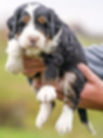These puppies are considered small multigenerational mini Bernedoodles. Their expected weight is 25 to 45lbs full grown, averaging 35. Straight to wavy coats expected at maturity.