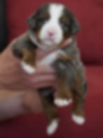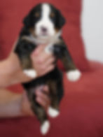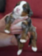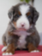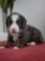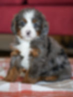 Expected adult weight 50-70Ibs, averaging 60Ibs. Soft textured, straight to loose wavy coat expected at maturity. These puppies are considered Medium Ultra Bernedoodles. Genetically, approximately 32% poodle and 68% Bernese Mountain Dog. Especially in larger breeds, females generally mature smaller than males.