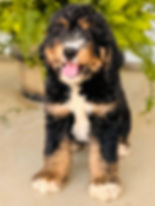 Expected adult weight 40-60Ibs, averaging 50Ibs. Soft textured, wavy coat expected at maturity. These puppies are considered Medium Multigerational Bernedoodles. Genetically, approximately 53% poodle and 47% Bernese Mountain Dog.