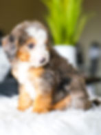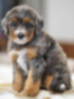 Expected adult weight 30-40Ibs, averaging 35Ibs. Soft textured, wavy coat expected at maturity. These puppies are considered Mini Multigerational Bernedoodles. Genetically, approximately 53% poodle and 47% Bernese Mountain Dog.