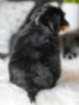 Expected adult weight 40-55Ibs, averaging 50Ibs. Soft textured, wavy coat expected at maturity. These puppies are considered Medium Multigerational Bernedoodles. Genetically, approximately 53% poodle and 47% Bernese Mountain Dog.
