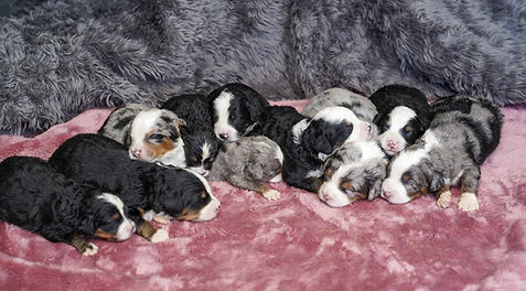 This Litter of puppies is considered F1 (50% Poodle and 50% Bernese). They are traditional mini size, estimated adult size at 28-40Ibs full grown. Expected coat type is wavy.