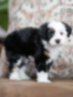 These puppies are considered small multigenerational mini Bernedoodles. Their expected weight is 25 to 35lbs full grown, averaging 30. Straight to wavy coats expected at maturity.