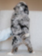 Meet Kraize! She’s an absolutely stunning mini poodle, weighing in at a perfect 14 lbs. Her unique blue merle coat is a true showstopper, featuring beautiful marbled markings that give her an eye-catching, one-of-a-kind appearance. But that’s not all—Kraize also has a striking blue eye, which adds even more to her dazzling look. She’s the kind of dog who turns heads wherever she goes!