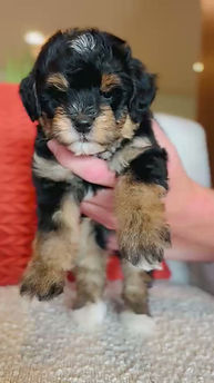 ✈ Travel size! Expected adult weight 15-25Ibs, averaging 17Ibs. Soft textured, straight to wavy coat type expected at maturity. These puppies are considered Micro Bernedoodles.