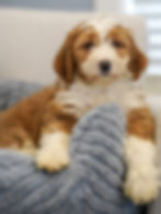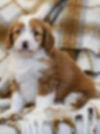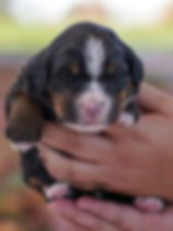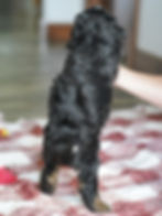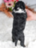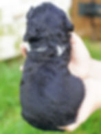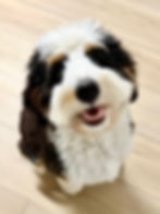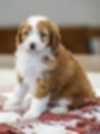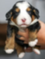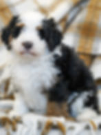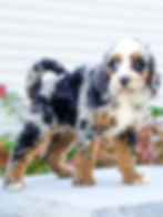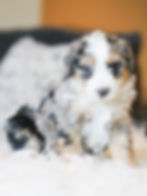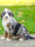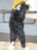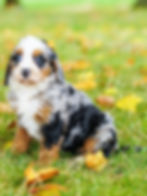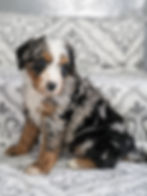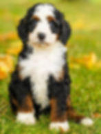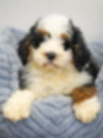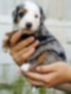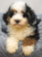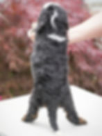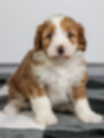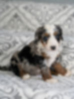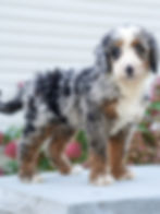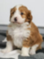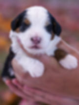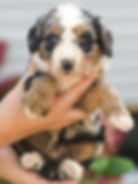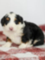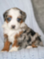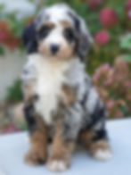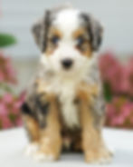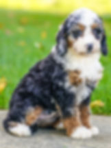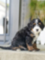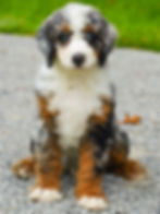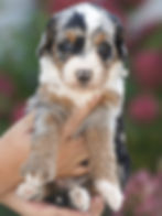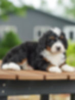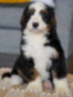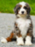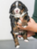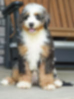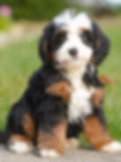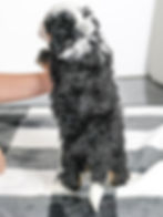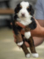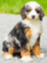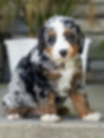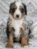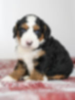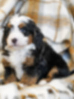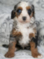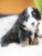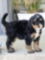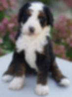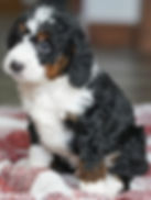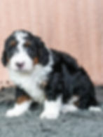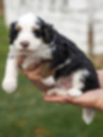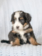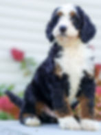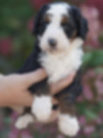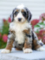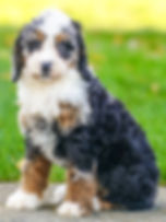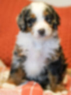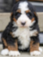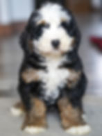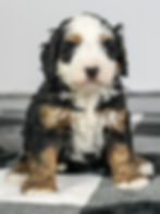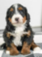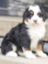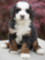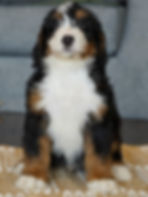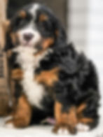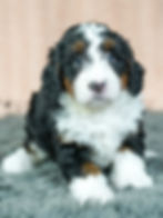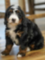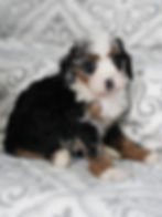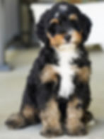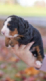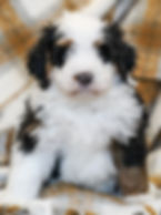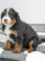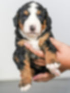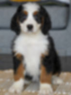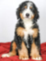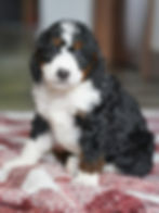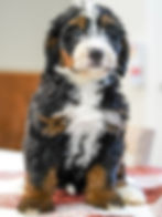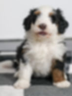 This litter is considered F2B (63% poodle and 37% Bernese). Expected to be 30-40Ibs full grown, averaging 35lbs. Expected coat type is soft textured, wavy.