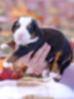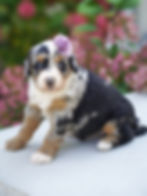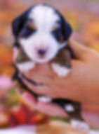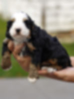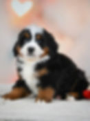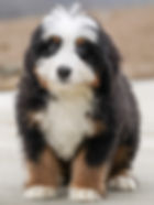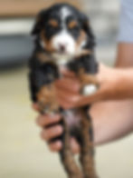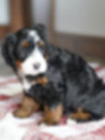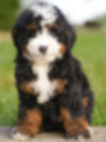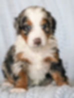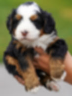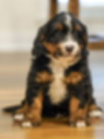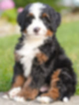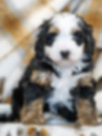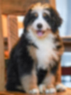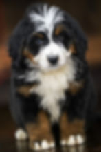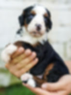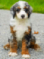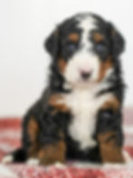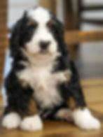 Expected adult weight 50-80Ibs, averaging 70Ibs. Soft textured, straight to loose wavy coat expected at maturity. These puppies are considered Medium Ultra Bernedoodles. Genetically, approximately 32% poodle and 68% Bernese Mountain Dog. Especially in larger breeds, females generally mature smaller than males.
