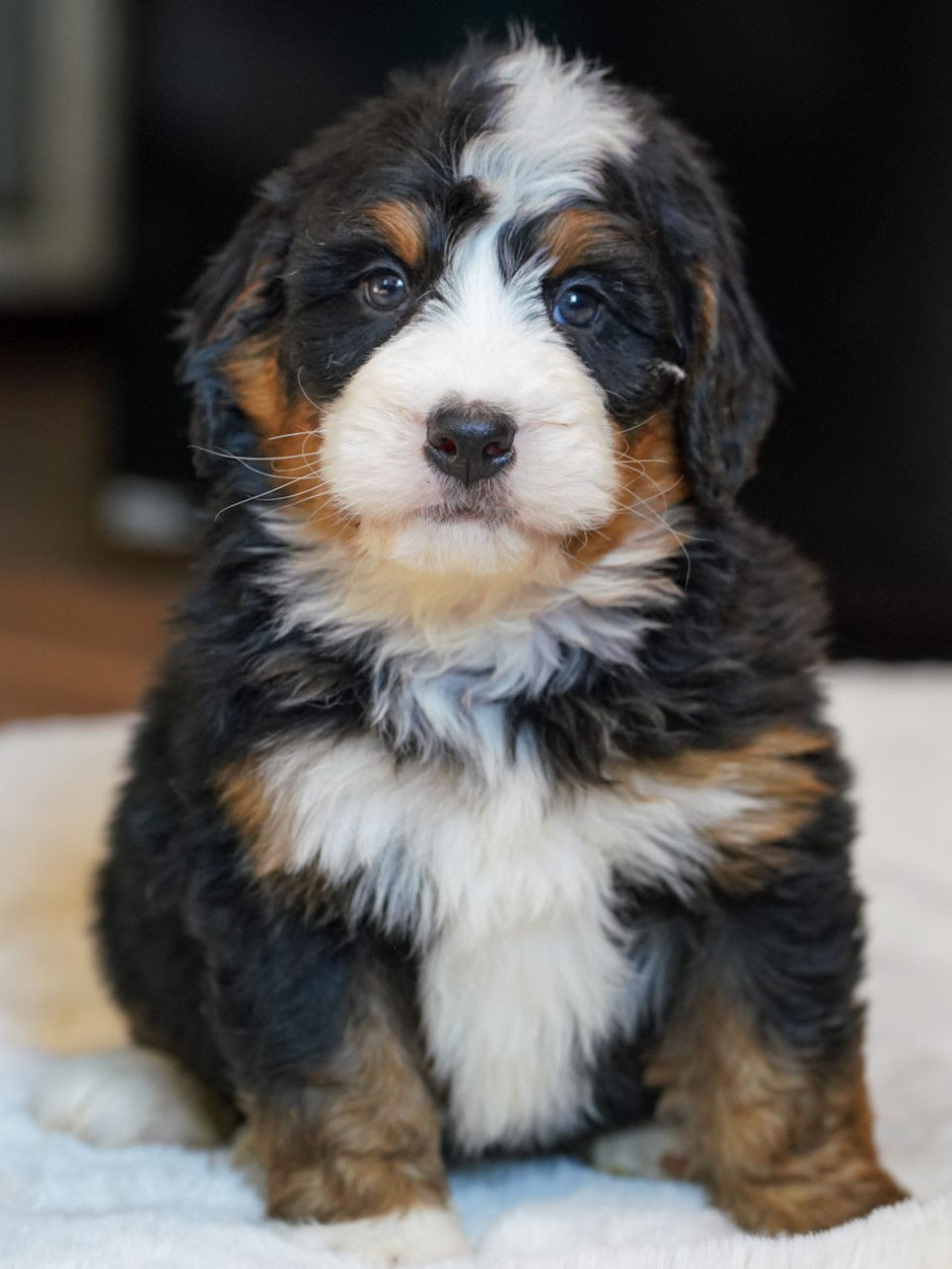 These puppies are considered mini/medium F1 Bernedoodles. Estimated adult weight is 35 to 50 pounds full grown. These puppies are expected to have a soft, straight to wavy at maturity.