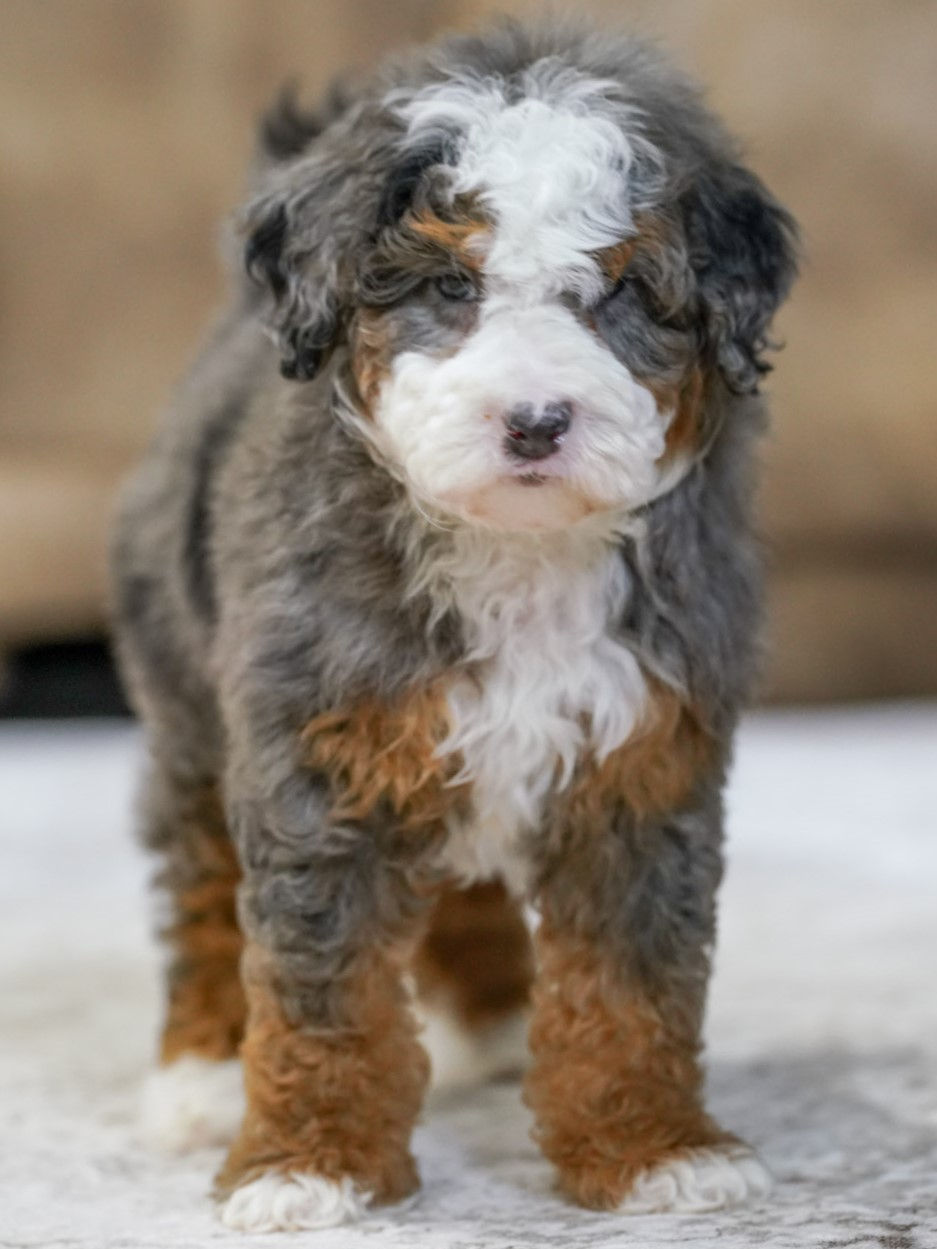 Expected adult weight 25-32Ibs, averaging 30Ibs. Soft textured straight to wavy coat type expected at maturity. These puppies are considered Micro F1b Bernedoodles.