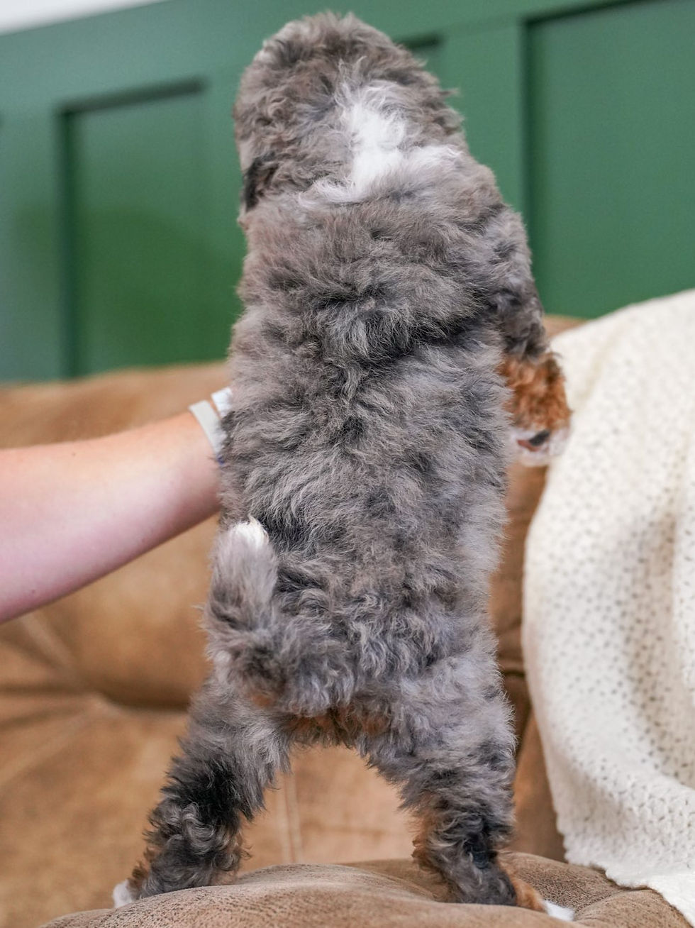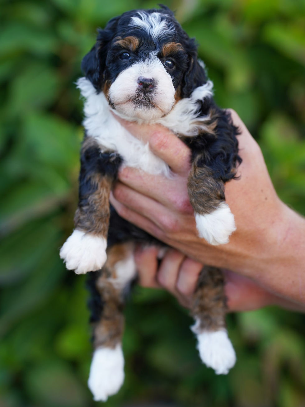 Polly is an adorable, happy-go-lucky Bernedoodle who’s as loving as she is beautiful. She’s genetically clear and lives the best life with her wonderful guardian family, who absolutely adore her. Polly has the sweetest eyes, bright tan points, and a gentle, nurturing personality that shines through in everything she does.