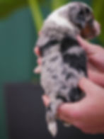 5 girls and a boy. 6 merle tri colored puppies in total.